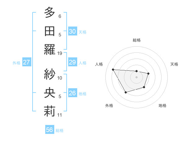 多田羅 紗央莉さんを姓名の画数から五運を鑑定