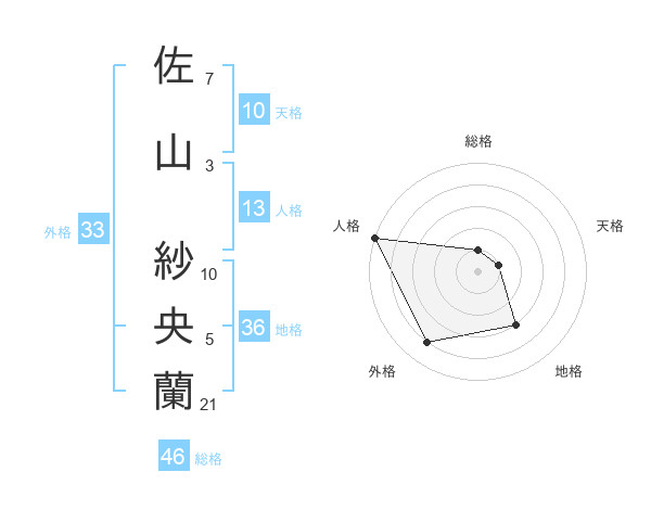 佐山 紗央蘭さんの総格は46画の1点!