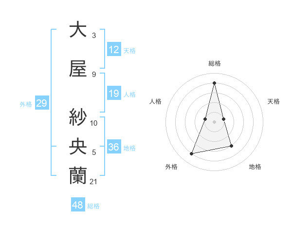 大屋 紗央蘭さんを姓名の画数から五運を鑑定
