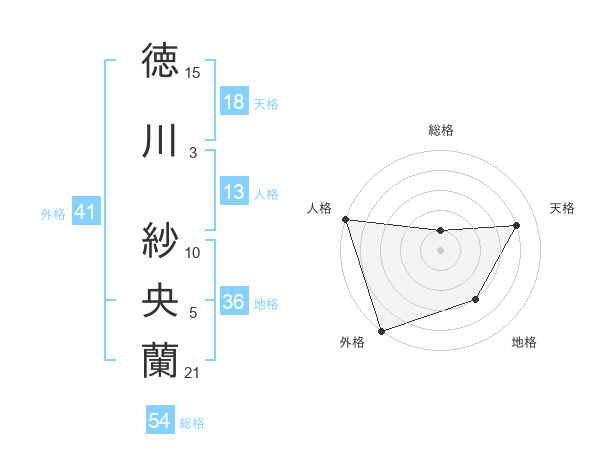 徳川 紗央蘭さんの天格は18画の4点!