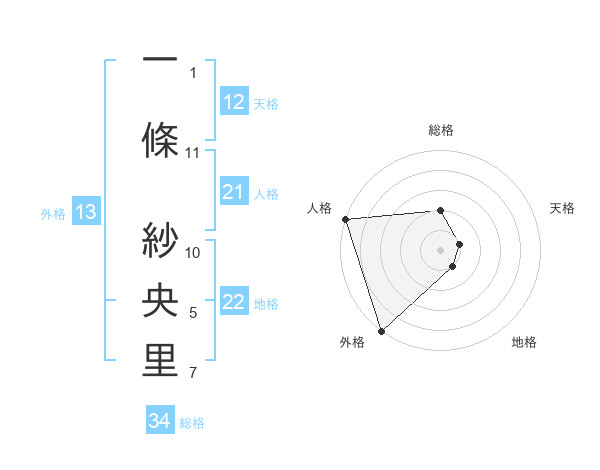 一條 紗央里さんを姓名の画数から五運を鑑定
