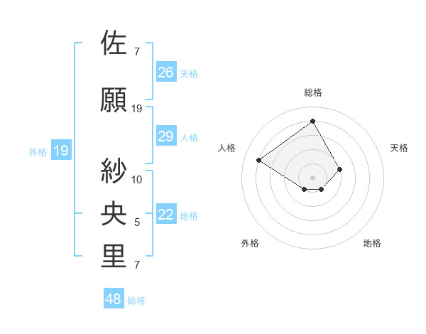 佐願 紗央里さんを姓名の画数から五運を鑑定