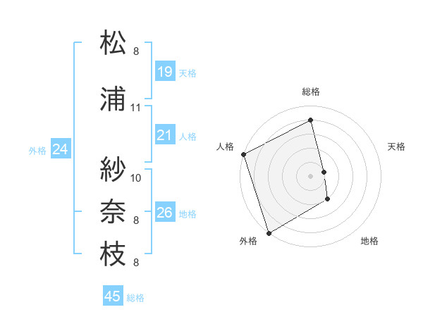 松浦 紗奈枝さんを姓名の画数から五運を鑑定