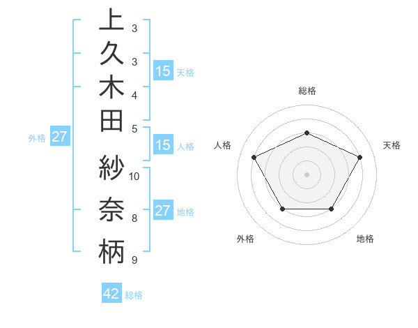 上久木田 紗奈柄さんを姓名の画数から五運を鑑定
