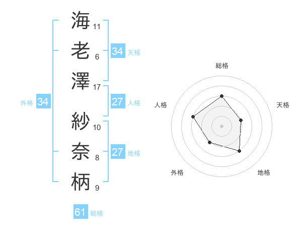 海老澤 紗奈柄さんを姓名の画数から五運を鑑定