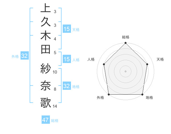 上久木田 紗奈歌さんを姓名の画数から五運を鑑定