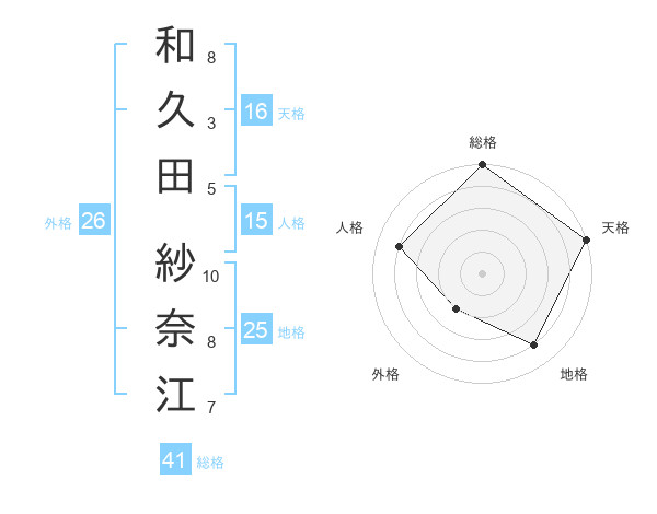 和久田 紗奈江さんを姓名の画数から五運を鑑定