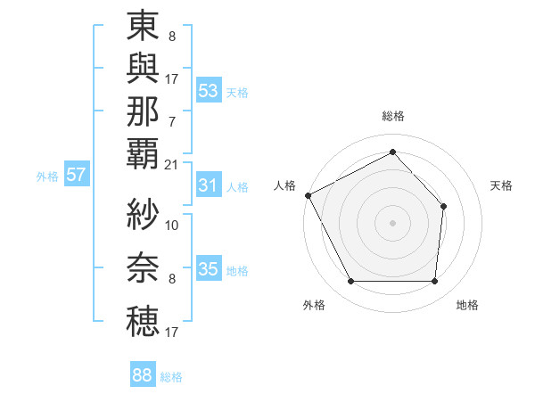 東與那覇 紗奈穂さんの総格は88画の4点!