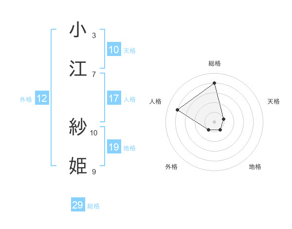小江 紗姫さんを姓名の画数から五運を鑑定