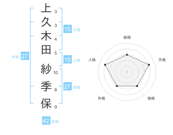 上久木田 紗季保さんを姓名の画数から五運を鑑定