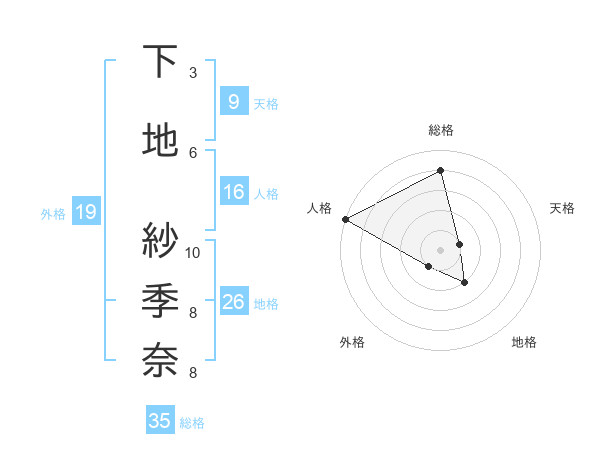 下地 紗季奈さんを姓名の画数から五運を鑑定