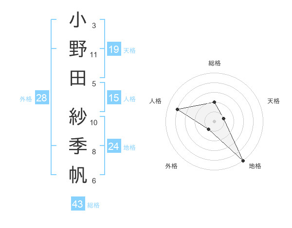 小野田 紗季帆さんを姓名の画数から五運を鑑定