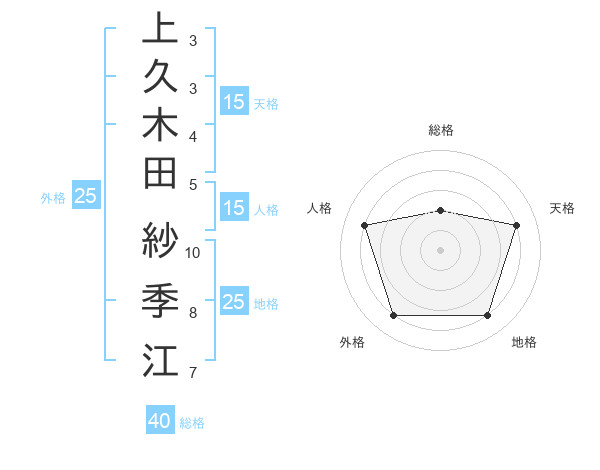 上久木田 紗季江さんの天格は15画の4点!