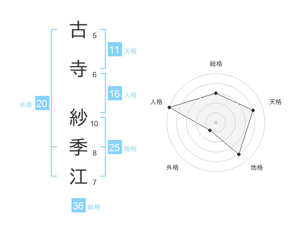 古寺 紗季江さんを姓名の画数から五運を鑑定