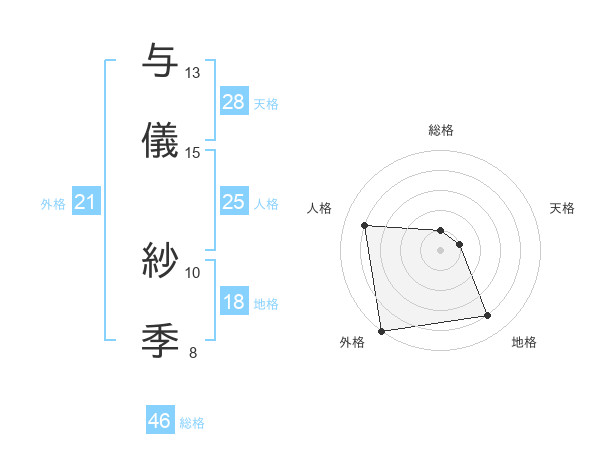与儀 紗季さんを姓名の画数から五運を鑑定