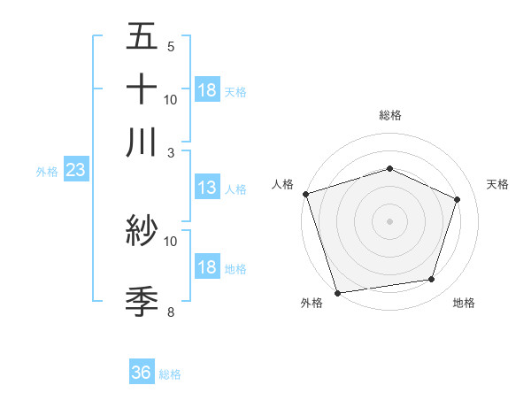 五十川 紗季さんを姓名の画数から五運を鑑定