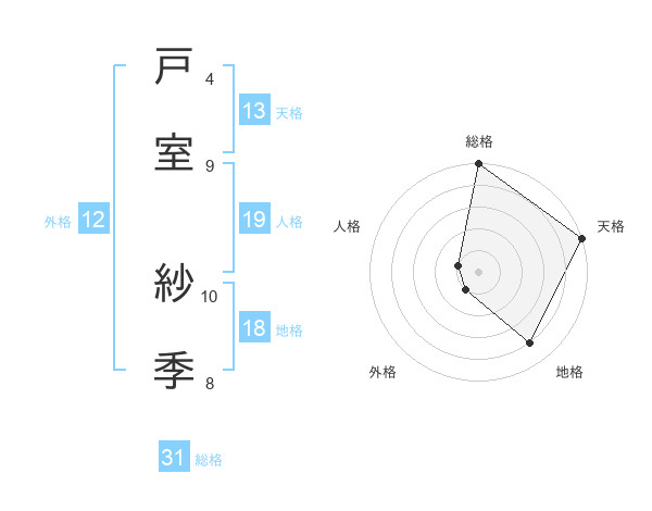 戸室 紗季さんの総格は31画の5点!