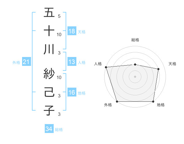 五十川 紗己子さんの天格は18画の4点!