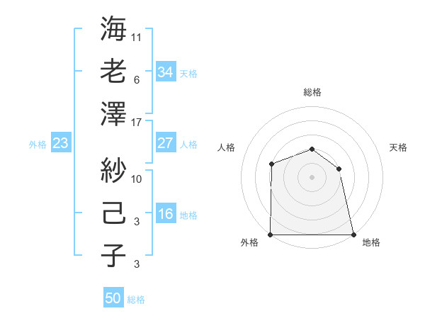 海老澤 紗己子さんを姓名の画数から五運を鑑定