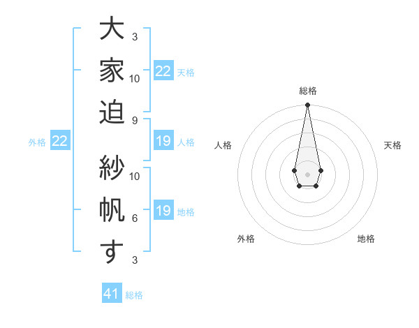 大家迫 紗帆すさんの総格は41画の5点!