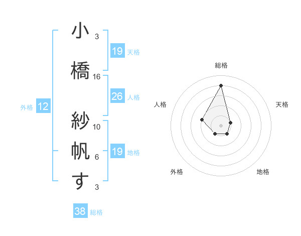 小橋 紗帆すさんを姓名の画数から五運を鑑定