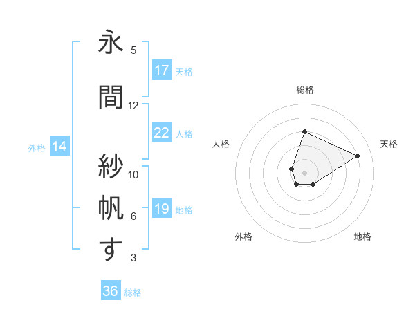 永間 紗帆すさんの天格は17画の4点!