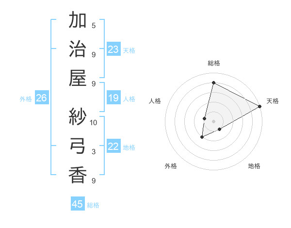 加治屋 紗弓香さんの天格は23画の5点
