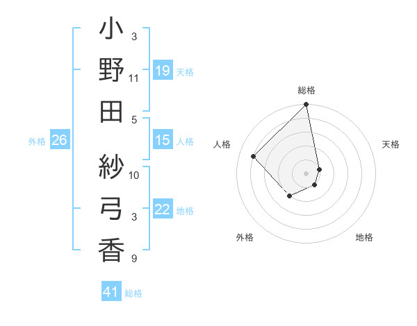 小野田 紗弓香さんを姓名の画数から五運を鑑定