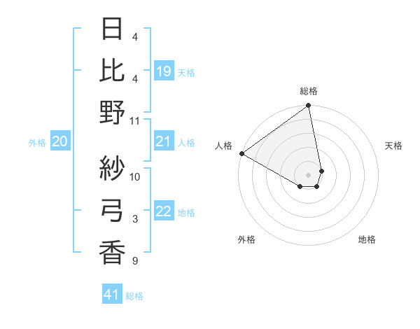 日比野 紗弓香さんを姓名の画数から五運を鑑定