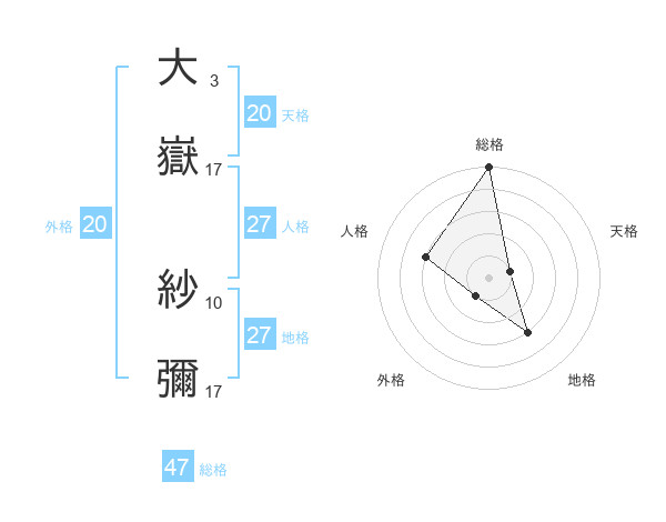 大嶽 紗彌さんを姓名の画数から五運を鑑定