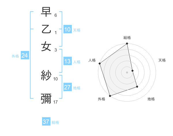 早乙女 紗彌さんを姓名の画数から五運を鑑定