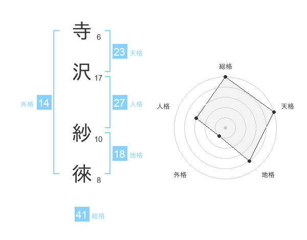 寺沢 紗徠さんの総格は41画の5点!