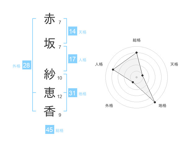 赤坂 紗恵香さんを姓名の画数から五運を鑑定