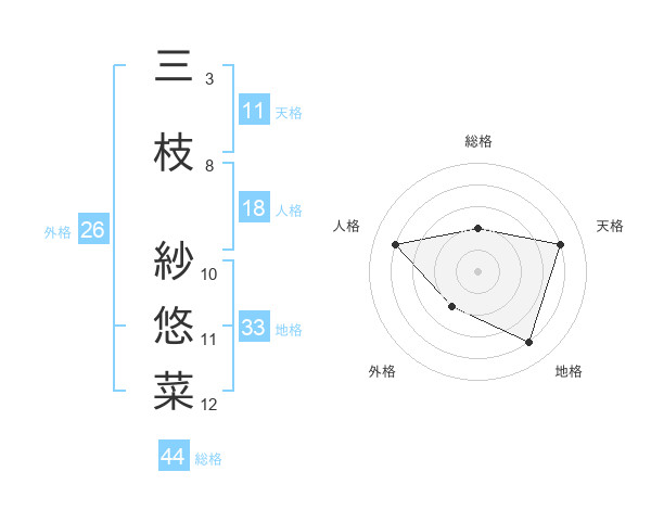 三枝 紗悠菜さんを姓名の画数から五運を鑑定
