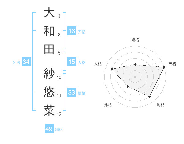 大和田 紗悠菜さんを姓名の画数から五運を鑑定