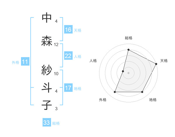 中森 紗斗子さんの総格は33画の4点!