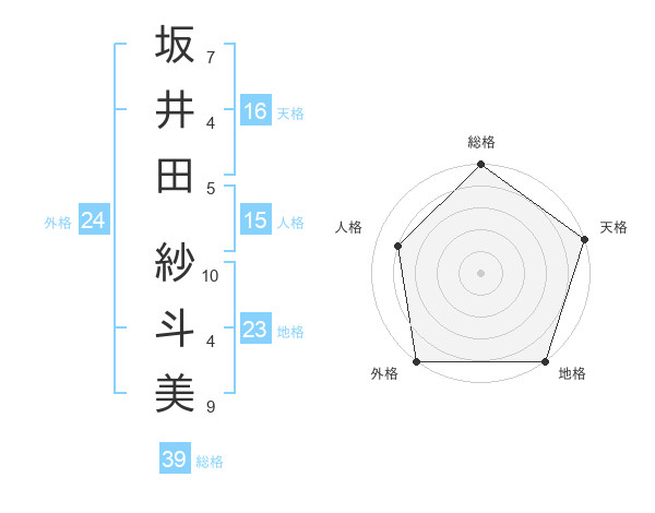 坂井田 紗斗美さんを姓名の画数から五運を鑑定