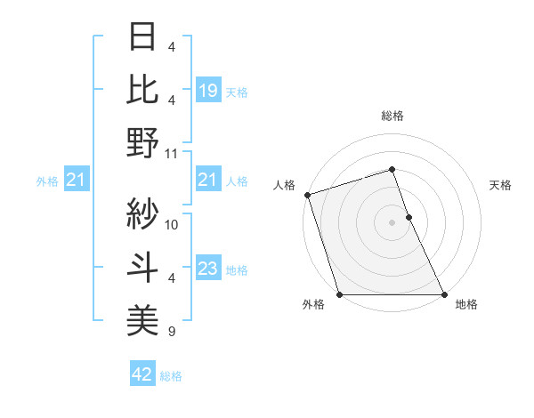 日比野 紗斗美さんを姓名の画数から五運を鑑定