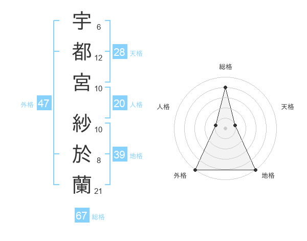 宇都宮 紗於蘭さんの外格は47画の5点!