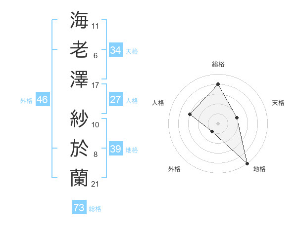 海老澤 紗於蘭さんの総格は73画の4点!