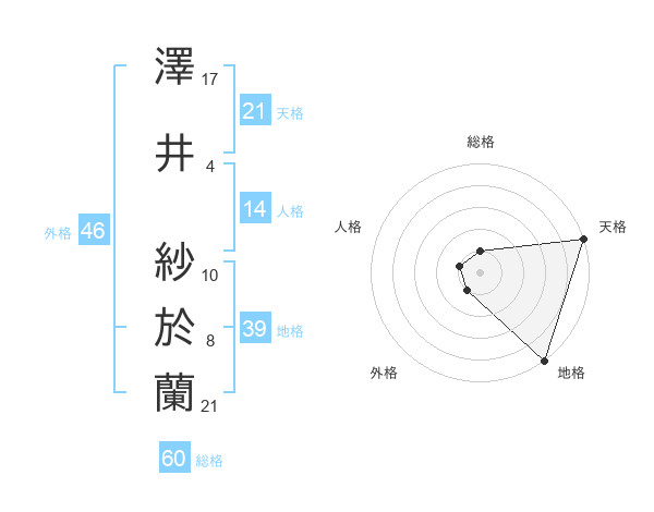 澤井 紗於蘭さんの天格は21画の5点!