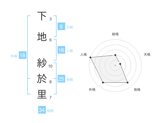 下地 紗於里さんの外格は18画の4点!