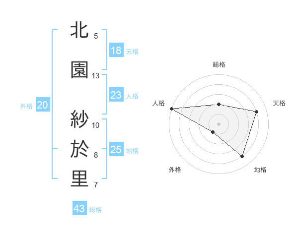 北園 紗於里さんを姓名の画数から五運を鑑定