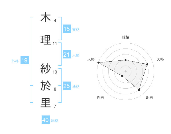木理 紗於里さんの天格は15画の4点!