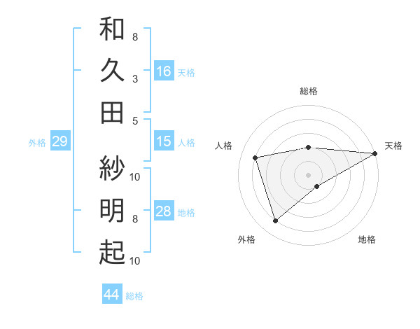 和久田 紗明起さんを姓名の画数から五運を鑑定
