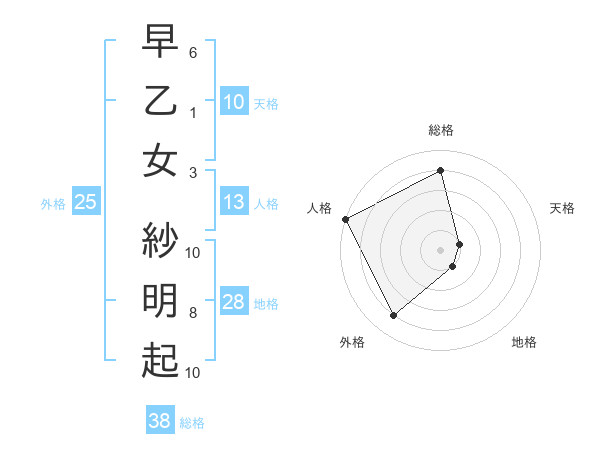 早乙女 紗明起さんの総格は38画の4点!