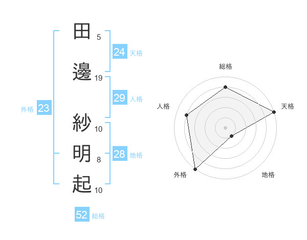 田邊 紗明起さんを姓名の画数から五運を鑑定