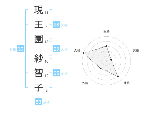現王園 紗智子さんを姓名の画数から五運を鑑定