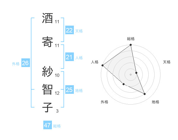 酒寄 紗智子さんを姓名の画数から五運を鑑定
