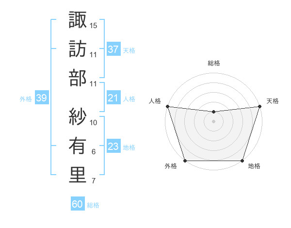 諏訪部 紗有里さんの総格は60画の1点!